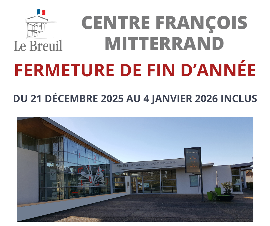 Le Centre François Mitterrand sera fermé durant les vacances scolaires de fin année, comme chaque année. La Bibliothèque, l’EPN, le Service Jeunesse ainsi que le secrétariat du CCAS seront donc […]